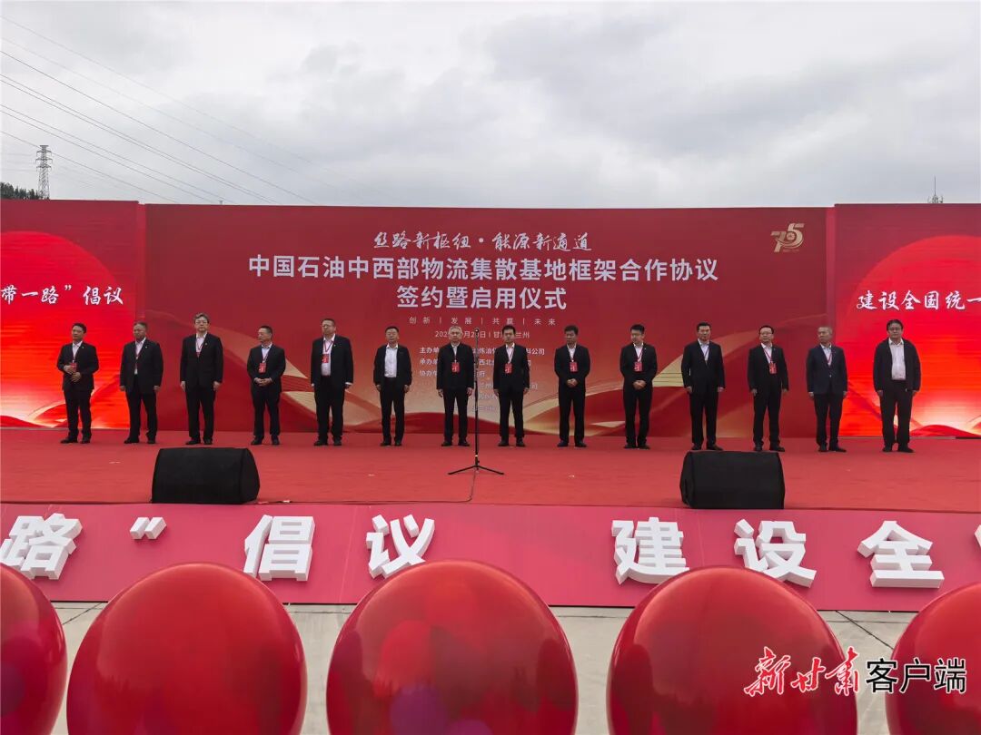 中國(guó)石油中西部物流集散基地框架合作協(xié)議簽約暨啟用儀式現(xiàn)場(chǎng)。