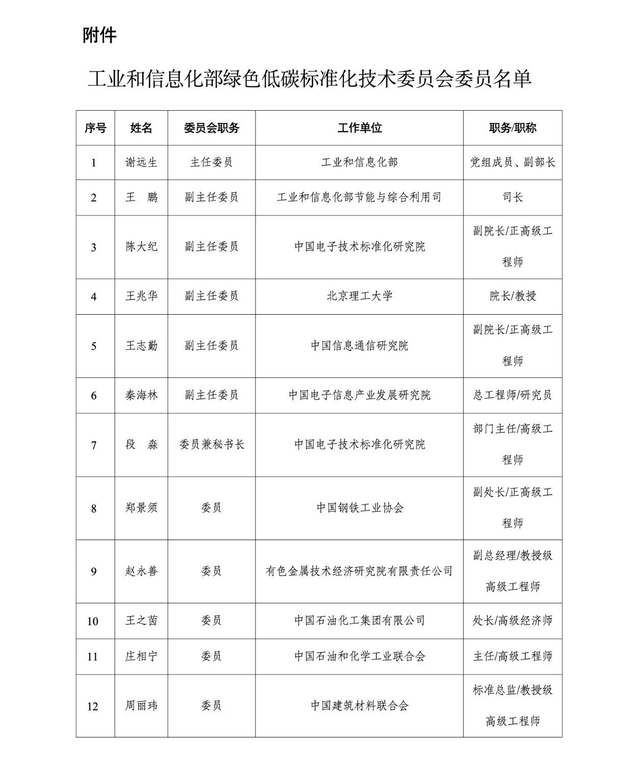 附件:工業(yè)和信息化部綠色低碳標(biāo)準(zhǔn)化技術(shù)委員會(huì)委員名單