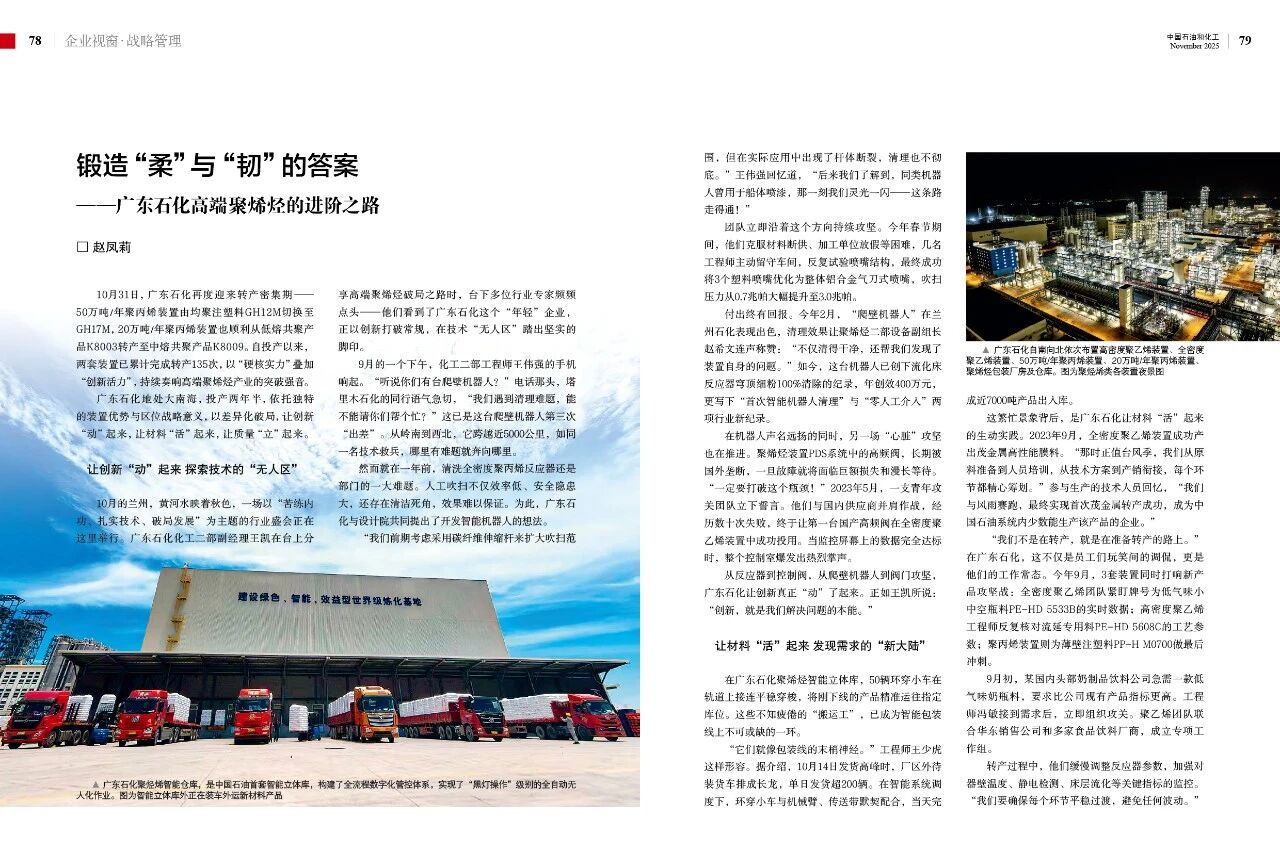 從反應(yīng)器到控制閥,從爬壁機(jī)器人到閥門攻堅(jiān),廣東石化讓創(chuàng)新真正“動(dòng)”了起來。正如王凱所說:“創(chuàng)新,就是我們解決問題的本能。”