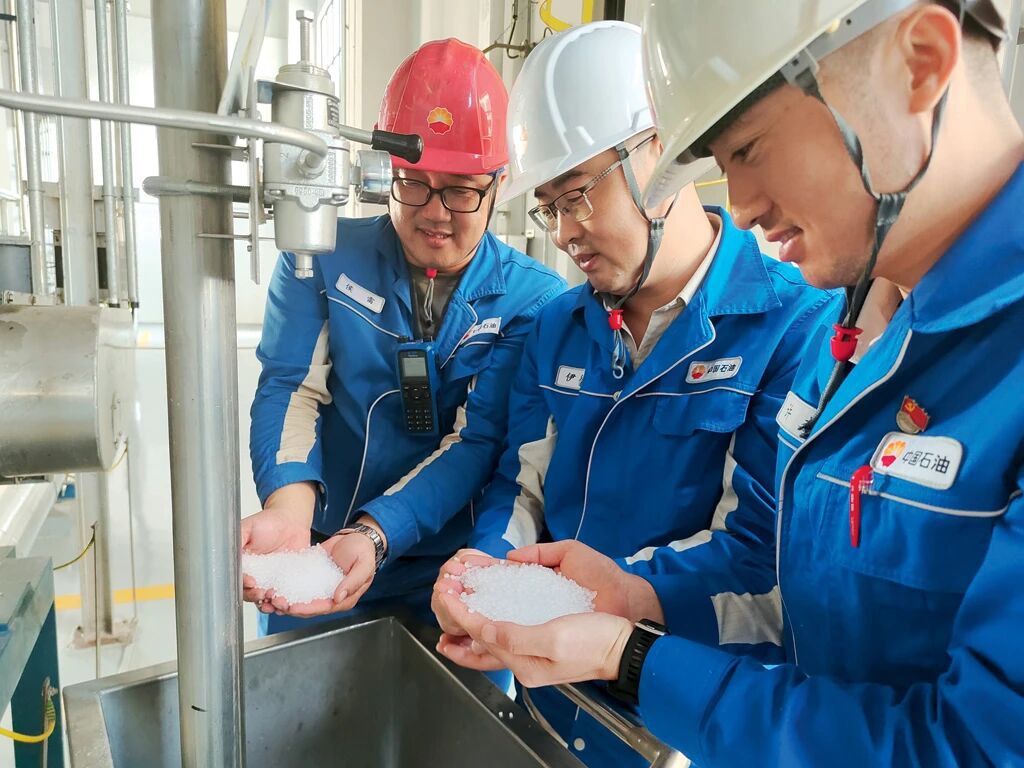 這繁忙景象背后,是廣東石化讓材料“活”起來的生動(dòng)實(shí)踐。2023年9月,全密度聚乙烯裝置成功產(chǎn)出茂金屬高性能膜料。“那時(shí)正值臺(tái)風(fēng)季,我們從原料準(zhǔn)備到人員培訓(xùn),從技術(shù)方案到產(chǎn)銷銜接,每個(gè)環(huán)節(jié)都精心籌劃。”參與生產(chǎn)的技術(shù)人員回憶,“我們與風(fēng)雨賽跑,最終實(shí)現(xiàn)首次茂金屬轉(zhuǎn)產(chǎn)成功,成為中國石油系統(tǒng)內(nèi)少數(shù)能生產(chǎn)該產(chǎn)品的企業(yè)。”